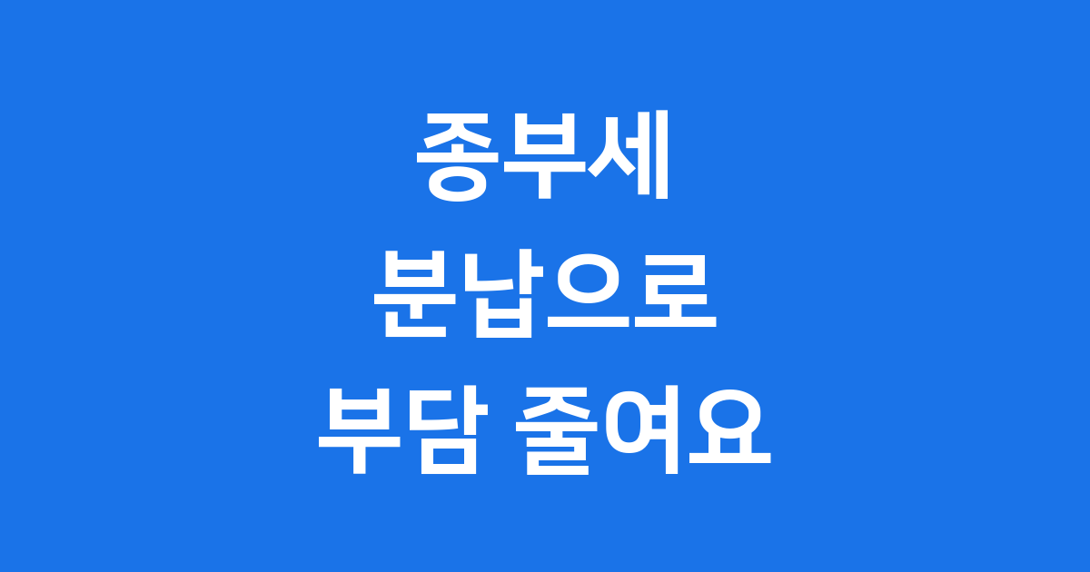 1. 종부세, 생활비 부담 줄이는 똑똑한 분납 전략!